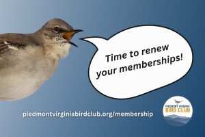 This is a friendly reminder from your Membership Chair to please take the time to renew your Monticello Bird Club membership, if you have not done so already. Your last year's membership … [Continue reading] Renew your MBC Membership for 2017-2018